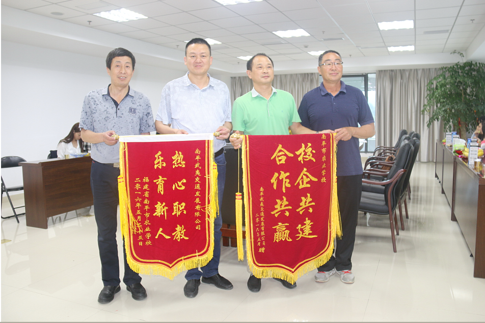 南平市農(nóng)校校長李立泉感謝武夷交發(fā)公司為農(nóng)校學生提供的實習平臺,今后希望繼續(xù)與武夷交發(fā)公司加強合作,進一步為農(nóng)校畢業(yè)生提供實習平臺。頂崗實習生也結(jié)合一年來的工作實際,踴躍發(fā)言,談了工作感受及今后努力方向。武夷交發(fā)公司與南平市農(nóng)校互相贈送了錦旗。
